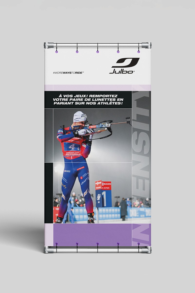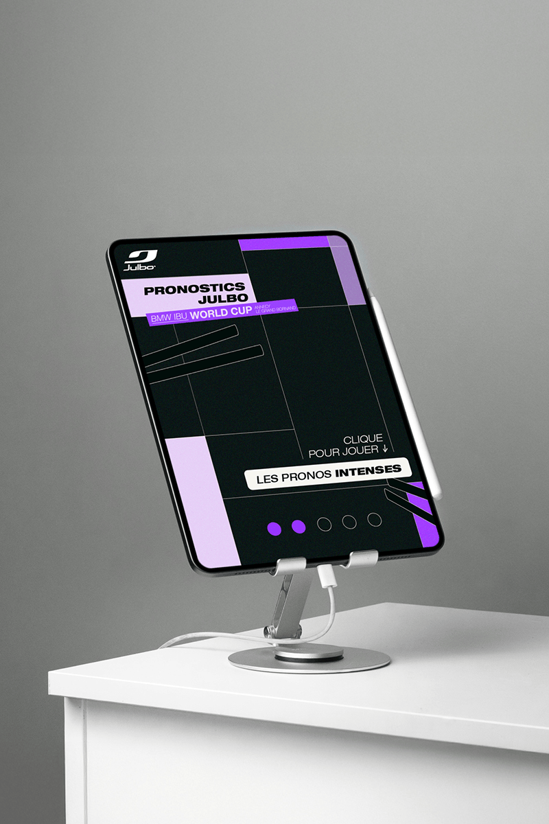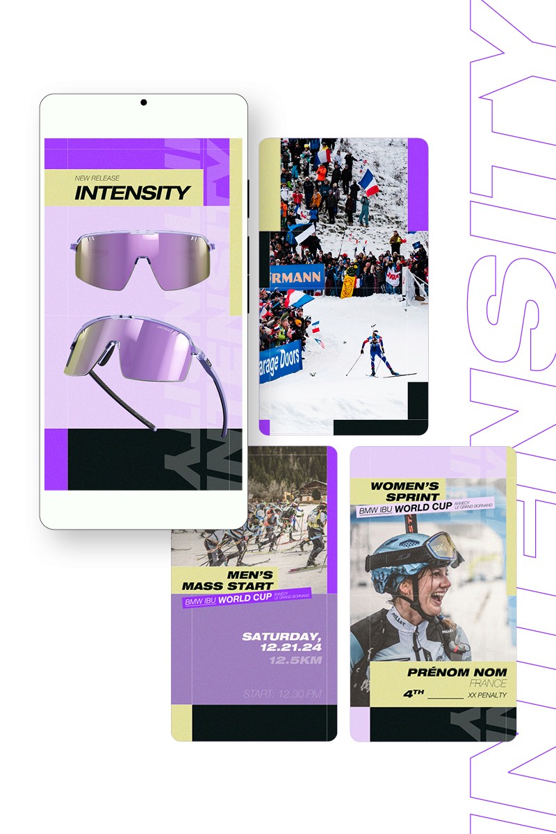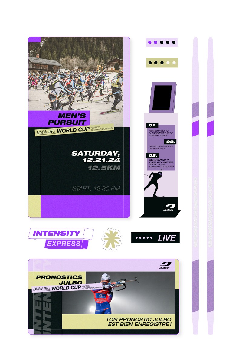 Création d’un univers graphique et déclinaisons pour la communication social media et événementielle de Julbo, à l’occasion de la Coupe du monde de biathlon à Annecy–Le Grand-Bornand en décembre 2024. Photos © Outdoor Perspectives - Travail réalisé en tant que DA au sein de l'équipe Outdoor Perspectives