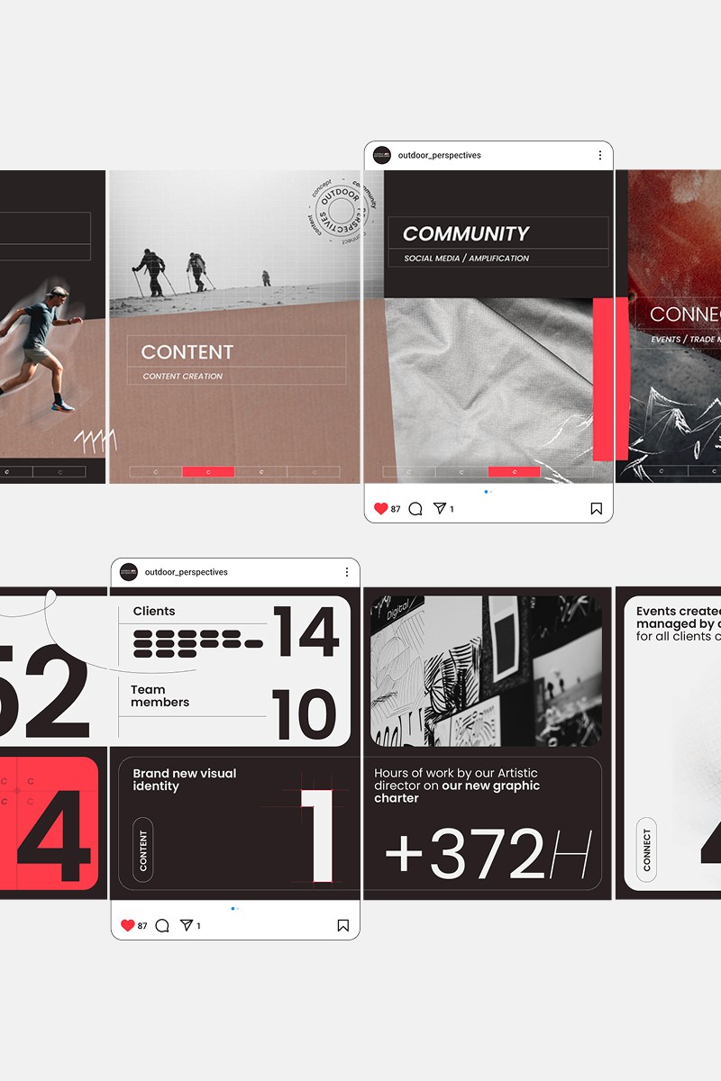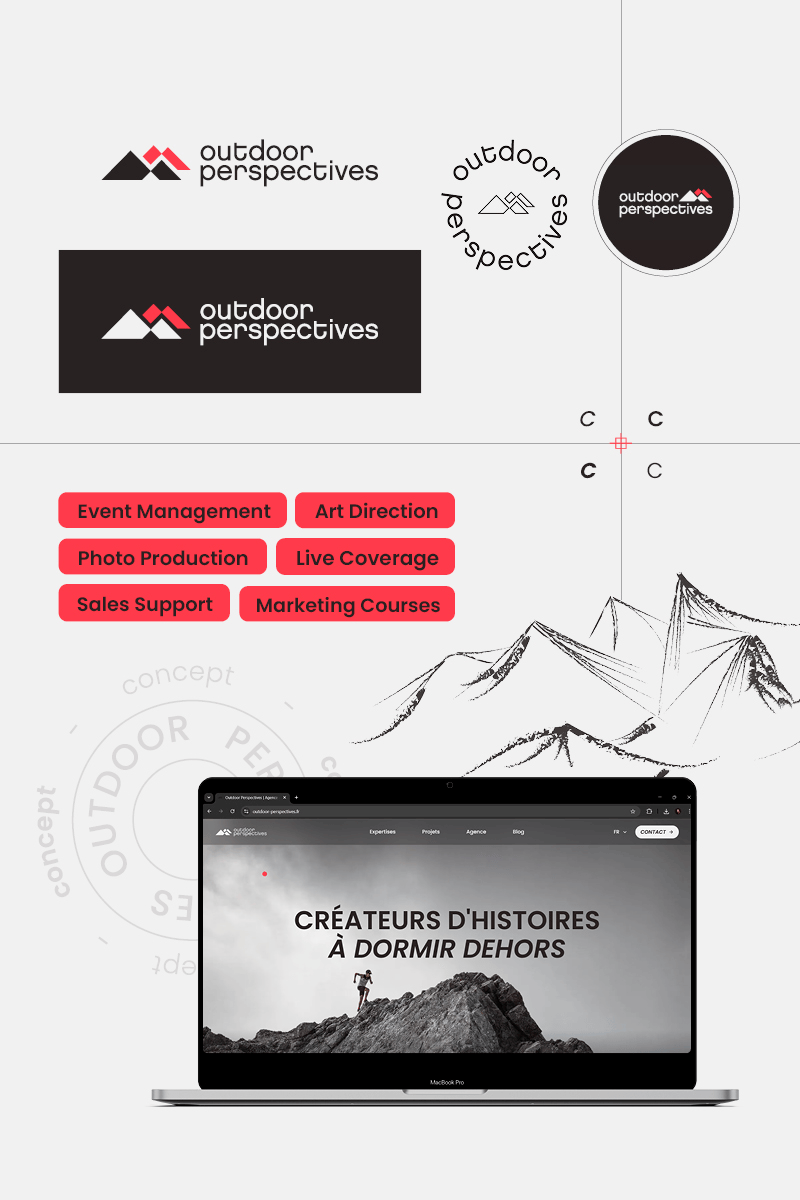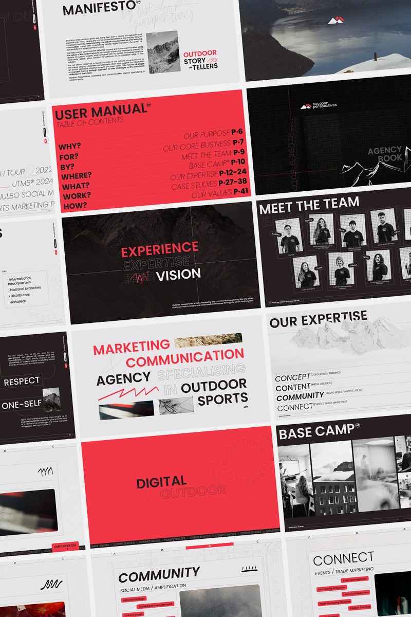 Création d’un nouveau territoire visuel pour Outdoor Perspectives, agence de communication & marketing spécialisée dans les sports outdoor à Annecy. Un univers vivant et texturé, appliqué et décliné sur tous les supports de l’agence, du social media au site web, en passant par le design d’espace et le print. Photos © Outdoor Perspectives - Travail réalisé en tant que DA au sein de l'équipe Outdoor Perspectives